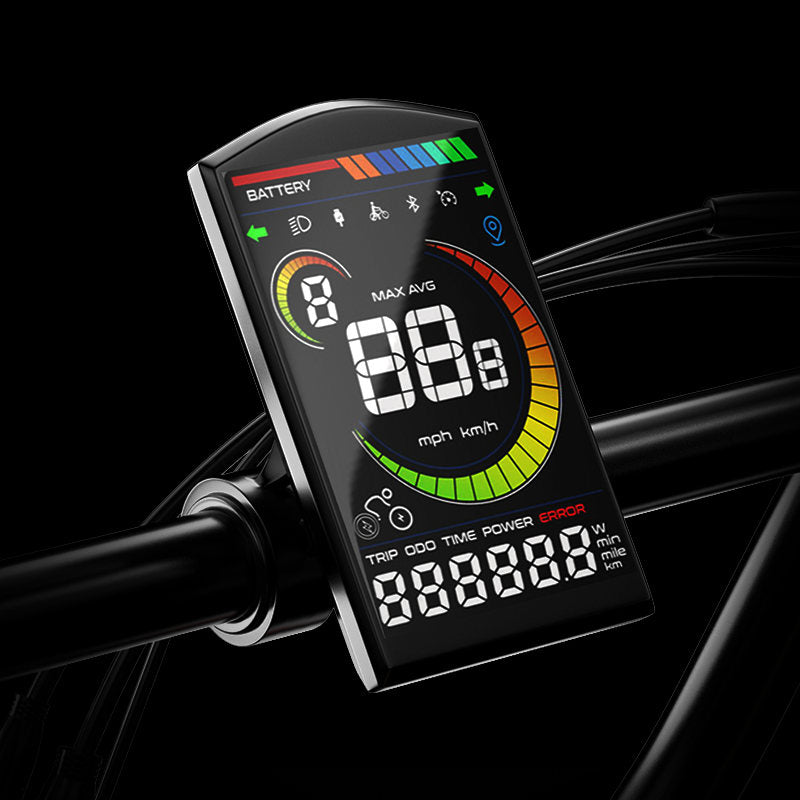 With a multifunctional display, you can view accurate information on speed, mileage, battery capacity, fault reminder, and pedal assist level, and even charges your phone via its concealed USB port!